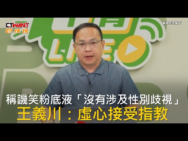 [周刊王CTWANT] 民進黨立委王義川日前在政論節目批評台中市長盧秀燕以全妝勘災,更脫口說出「一罐粉底液這麼小罐賣2400元,我也不知道賣怎樣的?」言論一出引發民進黨性平部罕見痛批,「我們不要厭女的台派」;時代力量黨主席王婉諭更抨擊,在政壇上可以激烈辯論立場,但不該攻擊個人的性別與外貌。對此,網紅「馬卡人妻」今(8日)在臉書發文指出,2400元就是一個正常價位的粉底而已,「我真的不知道一個粉底液有什麼好吵。」