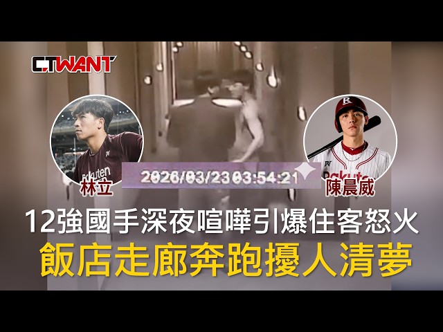 [周刊王CTWANT] 2026年世界棒球經典賽(WBC)國手陳晨威,與林立、歐晉3位球員,近日遭爆於入住高雄某飯店期間深夜喧嘩,引發其他房客不滿。時報周刊CTWANT接獲入住同飯店的客人投訴指出,3人上月23日凌晨接近4點的時候,仍在飯店走道奔跑嬉鬧、音量不小,導致住客難以入眠。