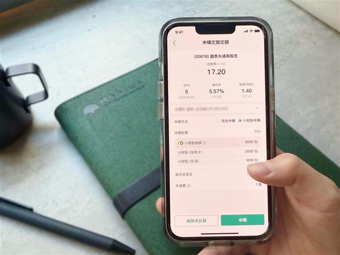 (圖)國泰證券與神坊資訊(小樹生活)攜手推出業界首創「生活變現、定期穩健」服務,讓客戶手中的點數可直接透過定期定額申購股票、ETF等投資商品。(圖/國泰證券提供,僅為畫面示意圖,不代表任何投資建議)