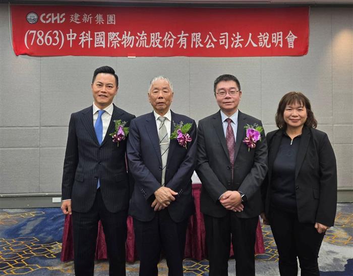 (圖)中科物流舉辦興櫃前法人說明會,將以每股39.8元價格於9月30日正式登錄興櫃。圖左2:建新國際集團創辦人暨中科物流董事長陳銀海、圖左1:建新國際董事長陳彥銘、圖左3:中科物流總經理金旭東、圖左4:中科物流財務處副理王素萍。