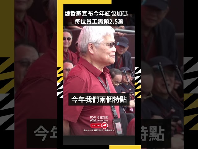 [NOWnews今日新聞] 真的好羨慕!台積電董事長魏哲家今(8)日宣布,今年一樣準備了一個小禮物,但今年不是一樣的數字,今年特別從每人發2萬元紅包,加碼到2.5萬元,同時,今年不只台灣員工拿,連世界各地同仁都有的領,十分大方豪氣。