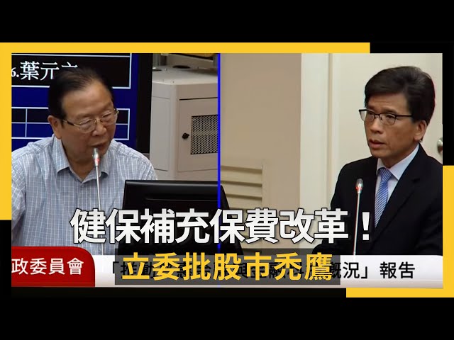 衛福部提出健保補充保費改革新制,引發民怨,行政院緊急喊停,不過,今(12)日在立法院立委質疑這算不算股市禿鷹?金管會主委彭金隆表示,「應該不至於」。(圖/擷取自立法院議事轉播)