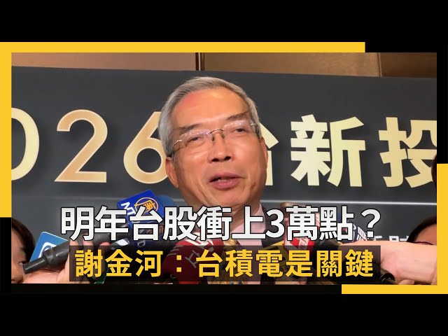 [NOWnews今日新聞] 即將迎接2026年到來,市場也紛紛喊出台股高點破3萬點,對此,財訊傳媒董事長謝金河今 (4) 日出席「2026台新投資展望論壇」時表示,台股會漲到哪要看台積電,如果台積電股價能到1800元至2000元,台股一定會上3萬點。不過,他也提醒,明年會繼續震盪,變數還是很多,產業與資金加速集中,沒在AI賽道上的公司會很慘,投資人選股難度也大幅提高,要更下功夫。