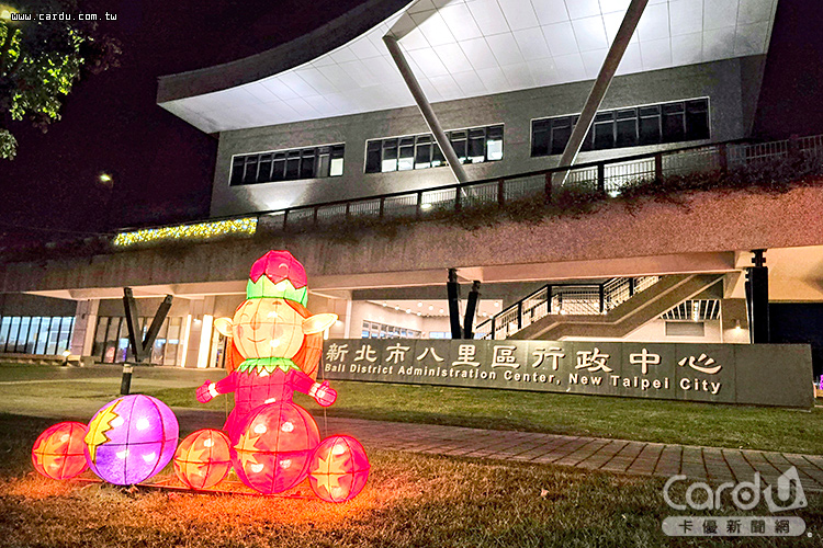 在對岸的八里,「聖誕幸福光園」於今(2)天在八里行政中心浪漫亮燈,活動現場湧入大量家庭、情侶及在地居民,燈光、聖歌與歡笑聲交織成冬季最溫暖的景象。今年燈區設置巨型聖誕帽主燈、聖誕老公公雪橇、麋鹿與小精靈造景,並以八里在地特色打造「八里三珍」(文旦、柑橘、黃金筍)的Q版花燈,成為拍照打卡熱點。