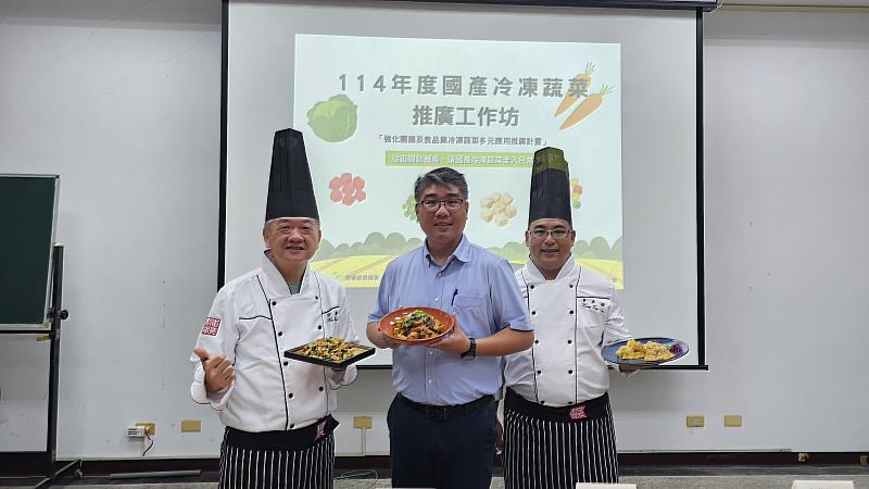 今年推廣的國產冷凍蔬菜包含:白花椰菜、毛豆仁、紅蘿蔔丁、洋蔥丁、馬鈴薯丁、三色豆、番茄丁、青花菜、玉米粒與芋頭丁等共十項品項,皆來自國產冷凍蔬菜加工廠,並具有ISO品質認證與產銷履歷驗證,確保產品來源透明、安全無虞。國產冷凍蔬菜具備多項優點,包括易於保存、不易腐壞、營養穩定、減少備料時間與人力成本,極具團膳系統導入潛力。多數參與者表示透過此次課程不僅深入了解冷凍蔬菜的營養價值與便利性,也對其未來應用於學校與機構餐食中更具信心,期待持續推動在地食材的使用與永續飲食的實踐。