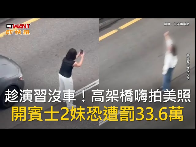 演習中荒唐一幕!2女高架橋上下車「俏皮擺拍」 網友怒了:不罰對不起守規者!
