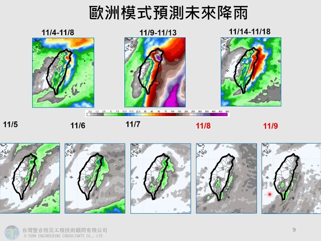 賈新興指出,週六、日(8、9日)午後山區、台東至鵝鑾鼻一帶有零星短暫雨;週日午後起至下週四受東北季風影響,下週一、二(10、11日)桃園以北、宜蘭有局部短暫雨,午後花蓮轉有局部短暫雨;下週三(12日)新竹以北、宜花東有陣雨,屏東亦有局部短暫雨。