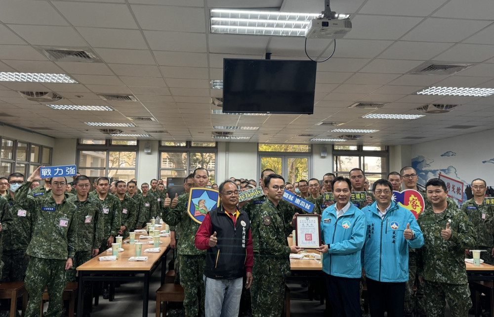 陳參議代表縣府向堅守崗位保衛國家的國軍官兵表達敬意,同時致贈勞軍款,感謝幹訓班各級幹部長年以來悉心照顧本縣籍役男。