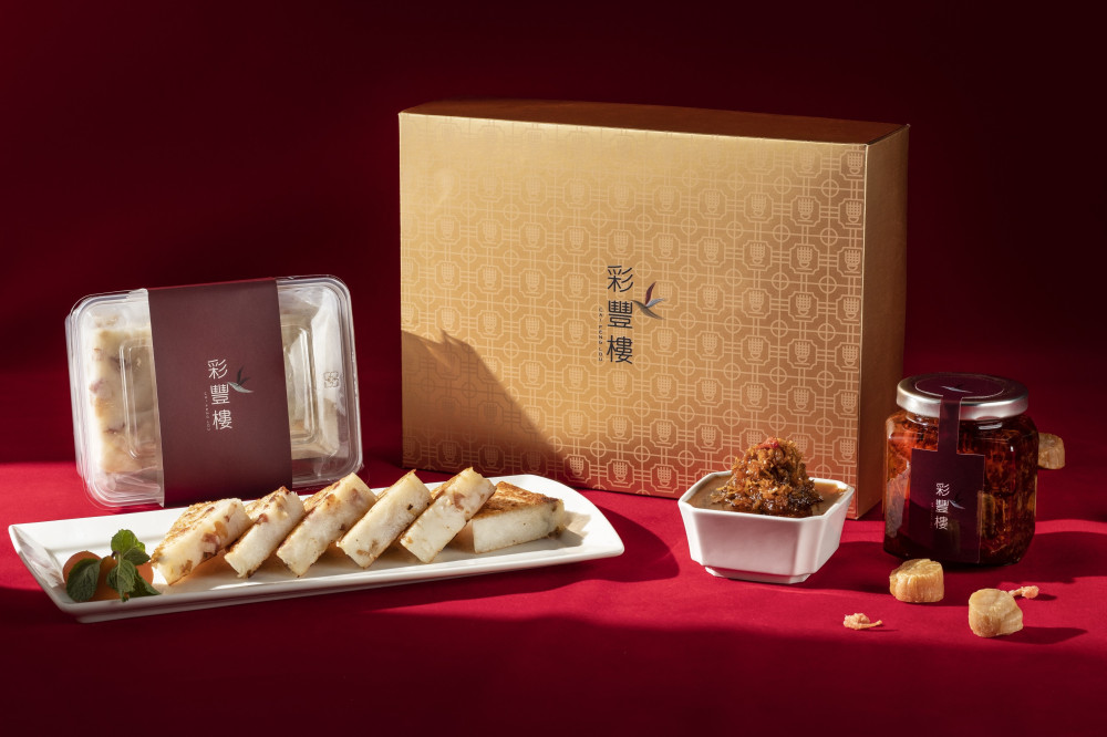 不僅如此,彩豐樓同步推出多款應景年節伴手禮,將吉祥寓意與粵式美味完美結合,滿足年節送禮需求;象徵「年年有餘」XO醬,及象徵「步步高升」蘿蔔糕與芋頭糕,可依個人喜好自由搭配;其中,1瓶XO醬搭配蘿蔔糕或芋頭糕1份特選禮盒售價850元;XO醬經典禮盒(2瓶XO醬)售價1,100元,金色盒身搭配臺南窗花與「豐」字設計,提袋上更印有安平守護神劍獅,兼具體面、吉祥與地方文化意涵。