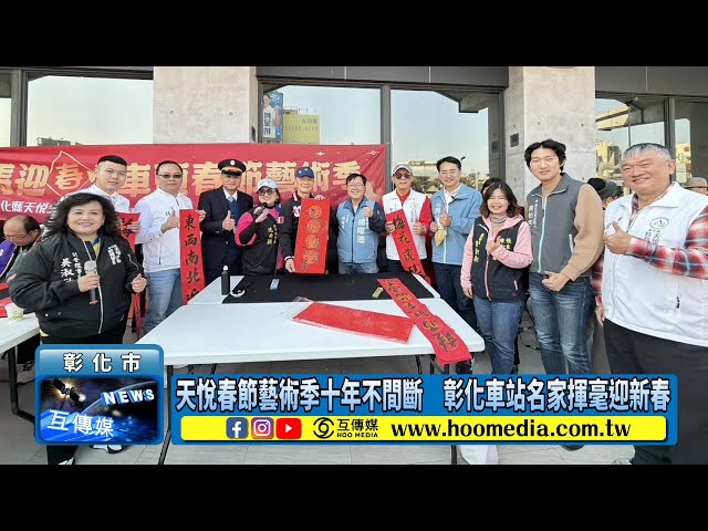 【互傳媒/記者 林明佑/彰化 報導】農曆春節將至,天悅生命教育協會今(8)日在彰化火車站舉辦「春節藝術季」,邀請書法名家現場揮毫書寫春聯,並安排熱鬧的歌舞演出,為返鄉旅客與在地鄉親帶來濃厚年節氛圍,也讓彰化車站洋溢喜氣與溫暖。今年活動邁入第十年,已成為春節前彰化重要的文化風景。