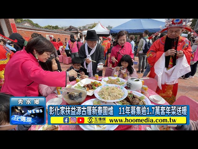 【互傳媒/記者 林明佑/彰化 報導】彰化家扶中心於今(8)日在秀水鄉益源古厝舉辦「新春幸福年菜圍爐」活動,彰化縣長王惠美、益源古厝第七代長孫陳邦弘與家扶中心主任王震光等人與會,現場由王縣長頒發感謝狀予善心團體及人士,並發放年菜給扶助家庭。活動現場的貴賓化身為幸福使者,手持象徵祝福的吉祥物,如蘋果(平安順心)、橘子(大吉大利)、柿子花生(好事發生)及長年菜(健康長壽),共同為扶助家庭親子傳遞新春祝福。