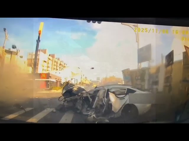 事故行車紀錄器畫面曝光後引發關注。畫面顯示,水泥預拌車當時緩緩減速停等紅燈,幾秒後,一輛白色特斯拉高速衝入鏡頭,毫無減速跡象,重重撞上車尾。瞬間巨響傳出,特斯拉車頭全毀,車身扭曲變形,碎片四散,接著衝向右側機車道,消失在鏡頭前。