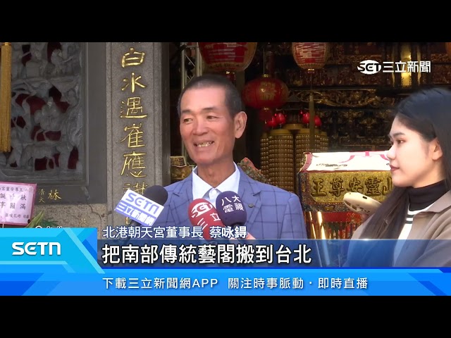 北港朝天宮董事長蔡咏鍀:「北港媽要恢復傳統,早期媽祖坐火車到艋舺車站,也是青山王去接的,今年比較特別,把南部傳統藝閣搬到台北,給台北都市小孩體驗。」
