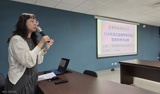 【記者 洪美滿/苗栗 報導】後龍公所政風室於9月25日上午舉辦廉政講習,特邀衛生福利部豐原醫院政風室劉詠琳主任擔任講師,講授內容涵蓋《公益揭弊者保護法》、《公職人員利益衝突迴避法》、綠能產業發展之圖利與便民區辨以及機關安全維護等重要議題,課程內容充實,廣獲與會同仁肯定。
