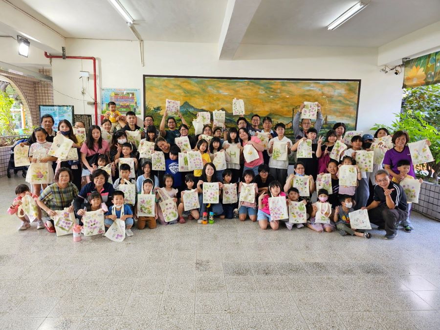 社教館親子共學巡迴列車前進旗尾國小 花卉敲染創意手提袋活動