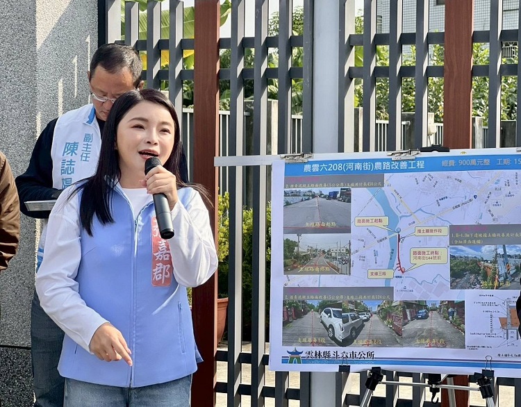 張嘉郡首先會同斗六市長林聖爵就「農雲六208(河南街)農路改善工程」,深入瞭解該工程規劃細節。張嘉郡指出,此路段為當地重要通行道路,改善工程包含主線456公尺及支線124公尺的瀝青混凝土(AC)路面重鋪,厚度達5公分,也告知施工單位要確保道路平整,預計改善經費900萬元。此外,同步對邊坡安全進行改改善,讓居民出入更安心。