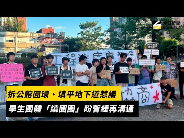 [NOWnews今日新聞] 北市府考量用路人安全,公館圓環拆除計畫將在13日動工,並且將填平公車專用地下道,希望減少事故率。學生團體今日聚集在台大校園旁舉辦快閃活動,希望呼籲政府暫緩工程,公開與民眾協商,更喊話邀請台北市長蔣萬安與副市長李四川至圓環現場走訪,親身體驗居民與通勤者每天必經的生活路徑。