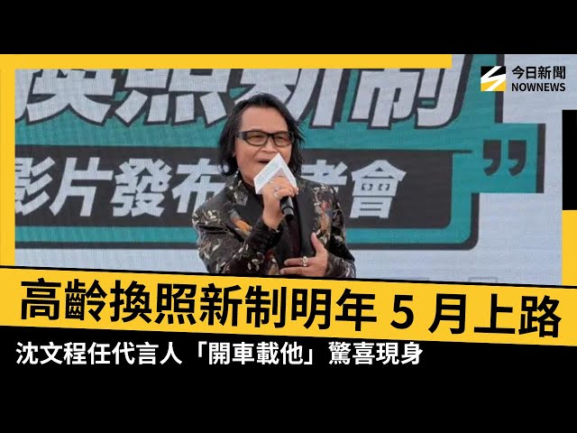 [NOWnews今日新聞] 交通部長陳世凱今(4)日宣布,自115年5月起正式實施高齡換照新制,並邀請知名藝人沈文程擔任宣導代言人,共同推廣高齡者安全駕駛觀念,今日記者會上,沈文程開車載陳世凱進場驚喜現身,陳世凱也笑說,希望下次載他時,沈文程已經換照了。