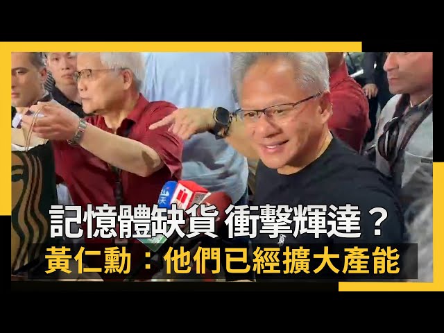 [NOWnews今日新聞] 輝達執行長黃仁勳今(8)日出席運動會,他致詞結束接受媒體訪問,針對這一波記憶體缺貨、漲價潮,他認為,AI快速增長會出現各種物資短缺,但現在三大廠商SK Hynix、三星、美光都已經擴大了巨大產能來支持他們,「我非常感激。」