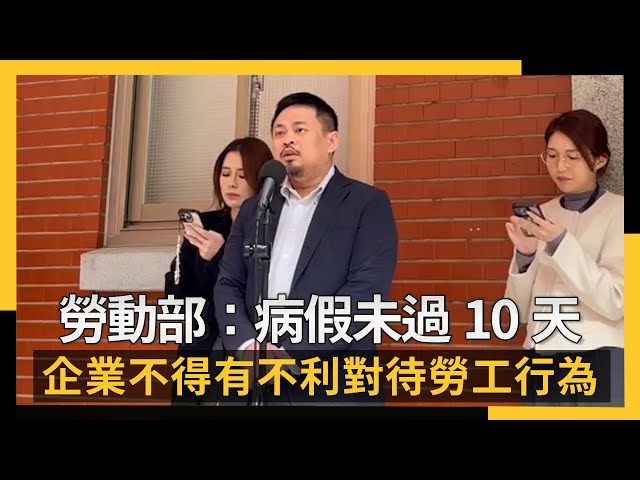 經過勞雇團體、相關專家學者諮詢,勞動部決議,將在勞工請假規則明訂,1年內,勞工請病假如果沒有超過10天,雇主不得做不利對待。