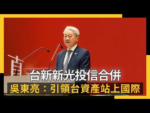 [NOWnews今日新聞] 台新、新光投信今(24)日正式完成合併,台新投信為存續公司,從此以後將為台新投信,新光投信為消滅公司。台新新光金控董事長吳東亮表示,象徵台新新光金控進入多引擎發展階段,隨著台新、新光投信合併,台新投信不只變大,還會變得更強壯,「我們有信心台新投信更能引領台灣的資產,管理產業走向兩岸、站上國際的舞台。」