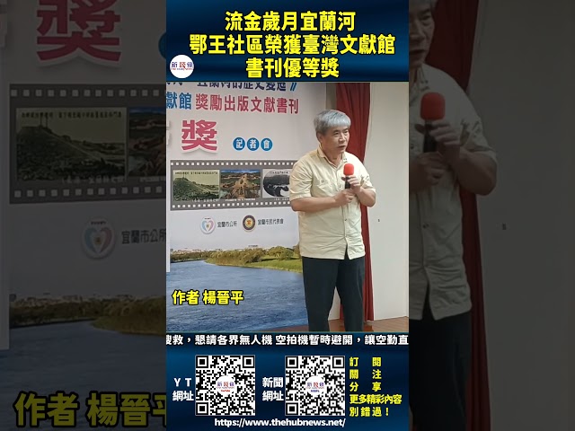 ![影音/流金歲月宜蘭河 鄂王社區榮獲臺灣文獻館書刊優等獎]()