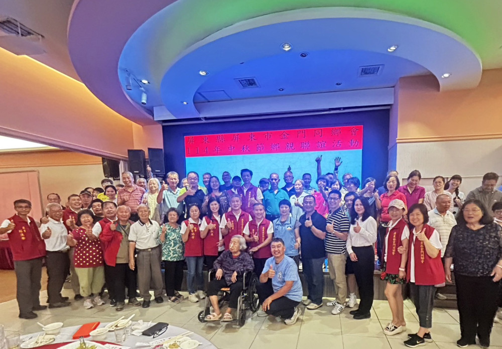【勁報記者于郁金/金門報導】每逢佳節倍思親,尤其身處臺灣旅台各地金門同鄉會,為維繫浯島鄉親情誼,以各種形式活動來歡慶中秋節到來;屏東縣屏東市金門同鄉會9月27日(六)假屏東市紅館宴會廳舉辦「114年中秋節鄉親聯誼餐會」活動,由該會理事長楊恭淼親臨主持,理事王宬宏擔任司儀,該會理監事鄉親等近120人熱情參與,金門縣政府南區服務處主任楊美雪、屏東市市民代表任峻賢共襄盛舉,增添光彩。