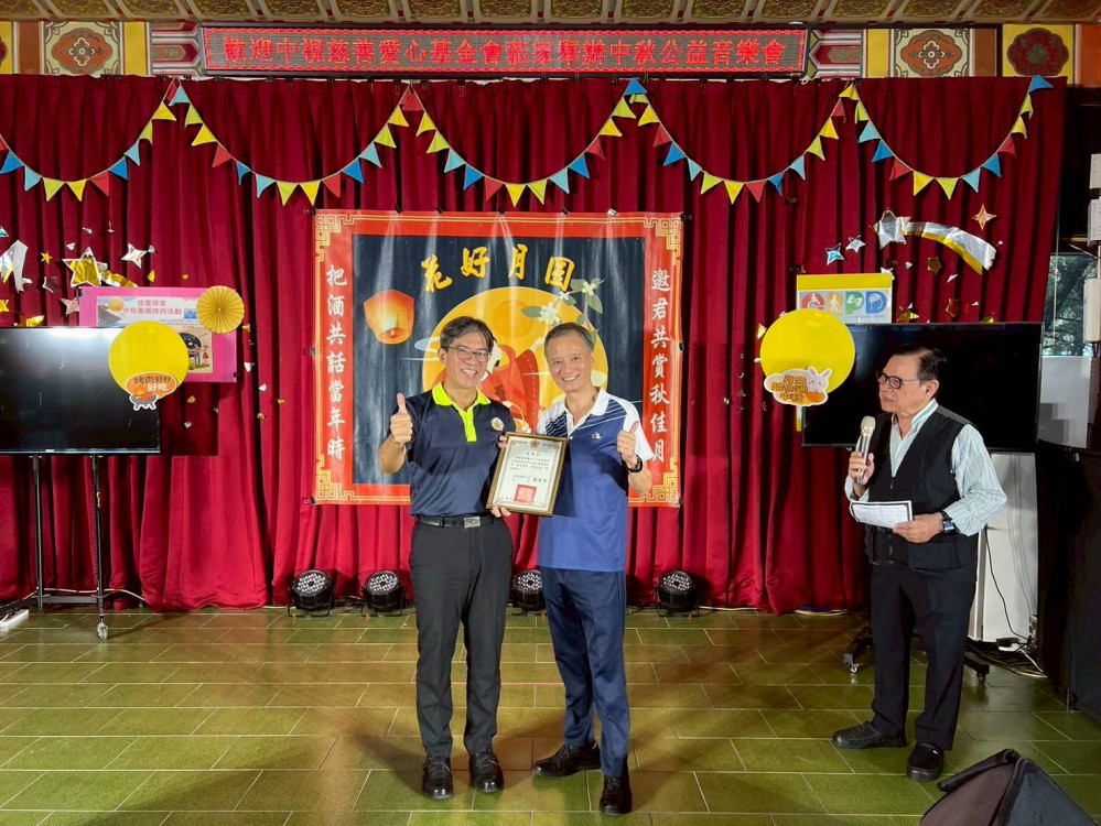 榮家表示,本活動由上曜集團雲康世紀、四葉國際餐旅集團、財團法人中視慈善愛心基金會及台南維悅酒店贊助,現場來了許多貴賓,包含高雄市青溪總會李宗霖總會長、台南市工商企業跨業交流會副會長何憲彰、雲康世紀許蘭心董事一起參與音樂盛宴,好人好事代表李東源會長更致贈在場住民鳳梨酥,與住民分享中秋喜悅。