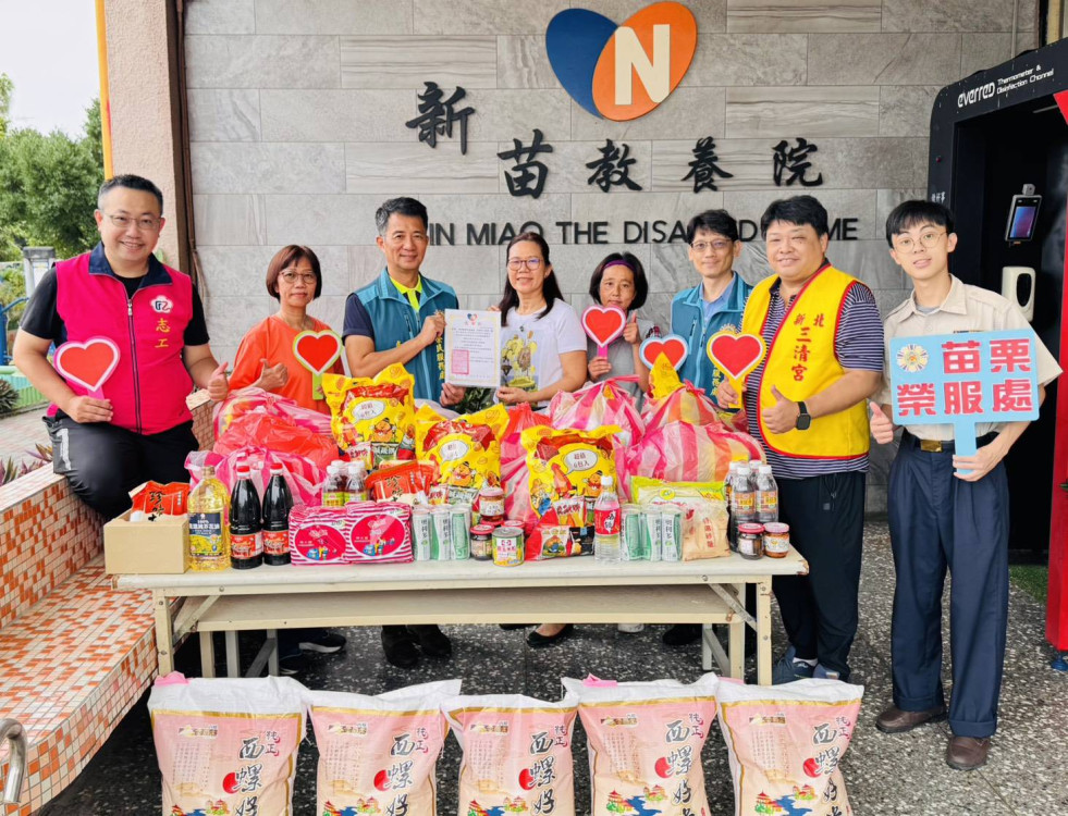 【勁報/苗栗報導】中秋佳節將屆,苗栗縣榮民服務處為使榮民眷家庭能安心過節,特別將各界善心人士及團體所捐贈食物箱、平安米等物資,由陳立中處長偕同王國良總幹事、新北三清宮服務團隊、榮欣志工及替代役男,送愛至後龍鎮新苗教養院及天春護理之家,由長照機構經營者代表受贈,讓溫暖與祝福傳遞到社會每個角落。