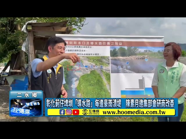 為解決長年問題,陳素月今(17)日下午特別邀集農業部農田水利署蔡昇甫署長、彰化管理處徐瑞旻處長,經濟部水利署張庭華總工程司、第四河川分署李友平分署長,彰化縣政府水資處水利工程科陳冠宇技士,以及地方民代包含彰化縣議會詹琬惠議員、二水鄉長蘇界欽、二水鄉民代表會陳家祐副主席、陳志柔代表與張鳳修代表,共同前往現地會勘,研商導水路改善方案。