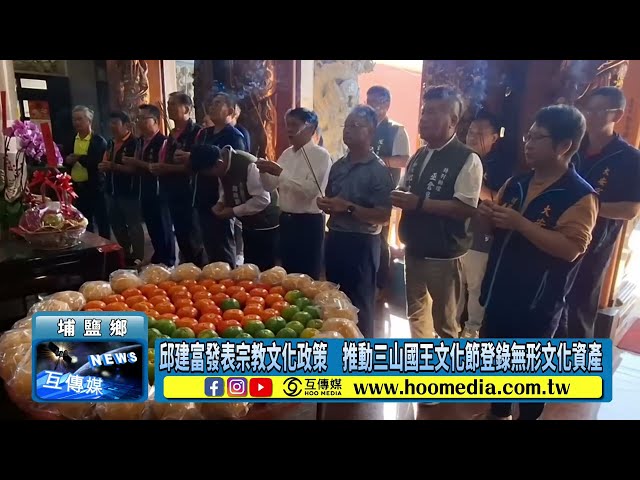 邱建富表示,宗教信仰是地方社會的靈魂與力量來源,也是一項珍貴的文化資產。他指出,自己長期參與宗教事務,曾任南瑤宮等十五間宮廟管理人,對民間信仰文化深有體悟,也因此被聘任為民進黨宗教委員會總召集人。他說,彰化縣的三山國王信仰歷史悠久、分布密集,是縣內極具代表性的民間信仰之一。