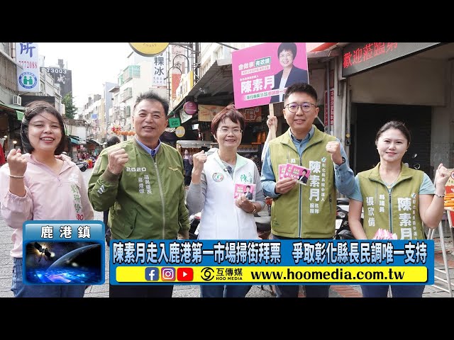 【互傳媒/記者 林明佑/彰化 報導】民進黨彰化縣長擬參選人陳素月今(27)日上午前往鹿港第一市場掃街拜票,福興鄉長蔣煙燈、議員藍駿宇、劉珊伶、張欣倩等人陪同,一行人向攤商與民眾爭取12月15日至18日接到電話民調「唯一支持陳素月」。掃街過程中,陳素月多次聽到民眾熱情加油,讓她直呼相當感動。
