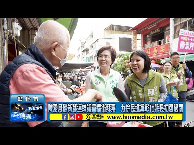 【互傳媒/記者 林明佑/彰化 報導】爭取民進黨彰化縣長提名的立法委員陳素月,展現團結氣勢,今(3)日偕同新芽連線五位縣議員楊子賢、洪騰明、張欣倩、藍駿宇與劉珊伶,前往彰化市八卦山牌樓路口及民生市場進行掃街拜票,積極爭取鄉親支持,力拚初選過關。