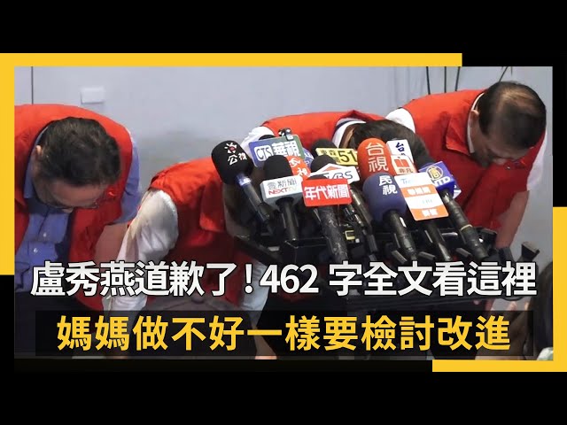 盧秀燕在聲明指出:「在整個防疫的過程當中,我們做的不夠好,身為市長,我必須概括承受,我應該要道歉。除了致歉,在剛才我們已經發布了相關首長的人事異動,另外,之前已經啟動的整個事件的調查,現在正在加速的進行當中,一有結果就會跟大家公布,在這個事件當中讓大家擔心了,我非常的抱歉,媽媽做不好一樣要檢討改進。」
