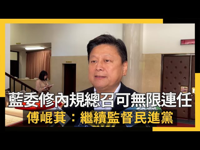 [NOWnews今日新聞] 國民黨立院黨團總召傅崐萁任期原訂到本會期結束為止,不過國民黨團今(7)日召開黨團大會,會中有38名立委提案,修改國民黨內規,取消總召「連任1次」規定,也就是讓總召職務可以無任期限制,明年1月底傅崐萁任期屆滿之後,是否要再競選連任,由傅崐萁自行決定。