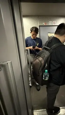 民眾黨主席黃國昌近日被拍到站著搭高鐵,而不是坐在商務艙內,引發輿論熱議。(圖/翻攝自Threads)