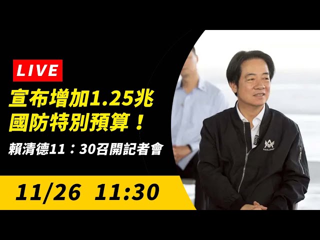 [NOWnews今日新聞] 總統賴清德昨(26)日投書《華盛頓郵報》,宣布將提出一項400億美元(約新台幣1.25兆)的追加國防預算,以強調捍衛台灣民主的承諾。對此,賴清德今(26)日上午9時30分召開「守護民主台灣國安行動方案」國安高層會議,並安排上午11時30分,在總統府舉行記者會,親自向國人說明,請鎖定《NOWnews》直播。