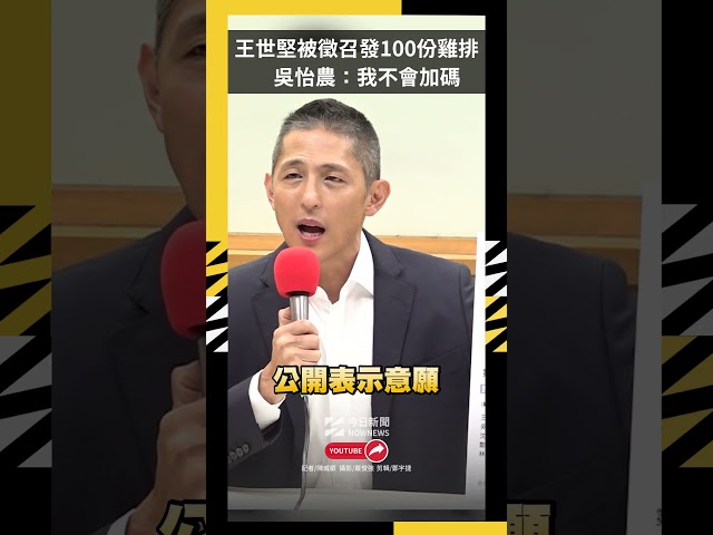 [NOWnews今日新聞] 2026縣市長選舉逼近,民進黨選對會對艱困選區台北市將進行徵召,立委王世堅昨日專訪時接受主持人所提出對賭,若自己被徵召將發送100份雞排。對此表態參選台北市長的吳怡農今(26)日打趣稱,自己是不會加碼請200份雞排的,而對於王世堅表示最推薦行政院副院長鄭麗君,「當然很希望委員有一天會支持我」。