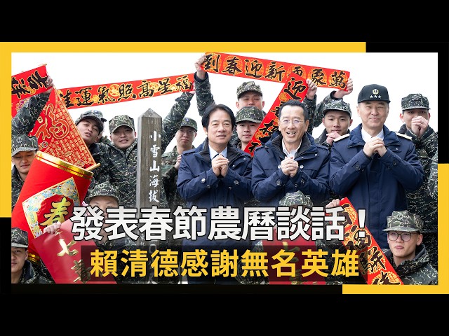 賴清德日前赴小雪山雷達站,錄製農曆春節談話影片,並於晚間6時登出。他說,這裡是全國海拔最高的海軍單位,位於高達3,020公尺的山頂上,他來和國軍官士兵一起圍爐,為他們加油打氣。