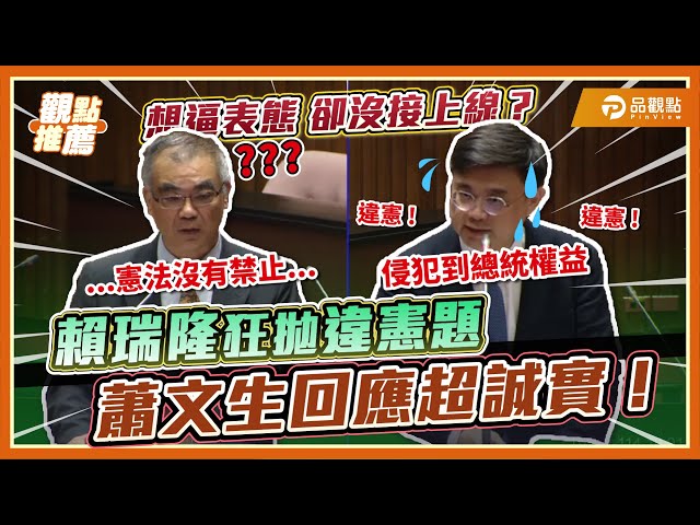 從總統報告問到藐視國會 賴瑞隆質詢頻提「是否違憲」