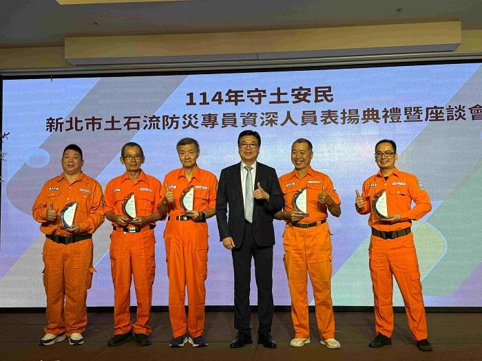 (記者謝政儒綜合報導)為感謝土石流防災專員多年來的無私奉獻與專業守護,新北市政府今(2)日舉辦「114年守土安民—新北市土石流防災專員資深人員表揚典禮暨座談會」,由劉和然副市長表揚頒發服務滿20周年的獎座,共邀請150位土石流防災專員及區公所防災夥伴公開肯定防災專員長期守護社區、降低災害風險的卓越貢獻。典禮現場氣氛隆重且溫馨,不僅凝聚了各地專員的向心力,也展現市府對社區防災工作的高度重視。