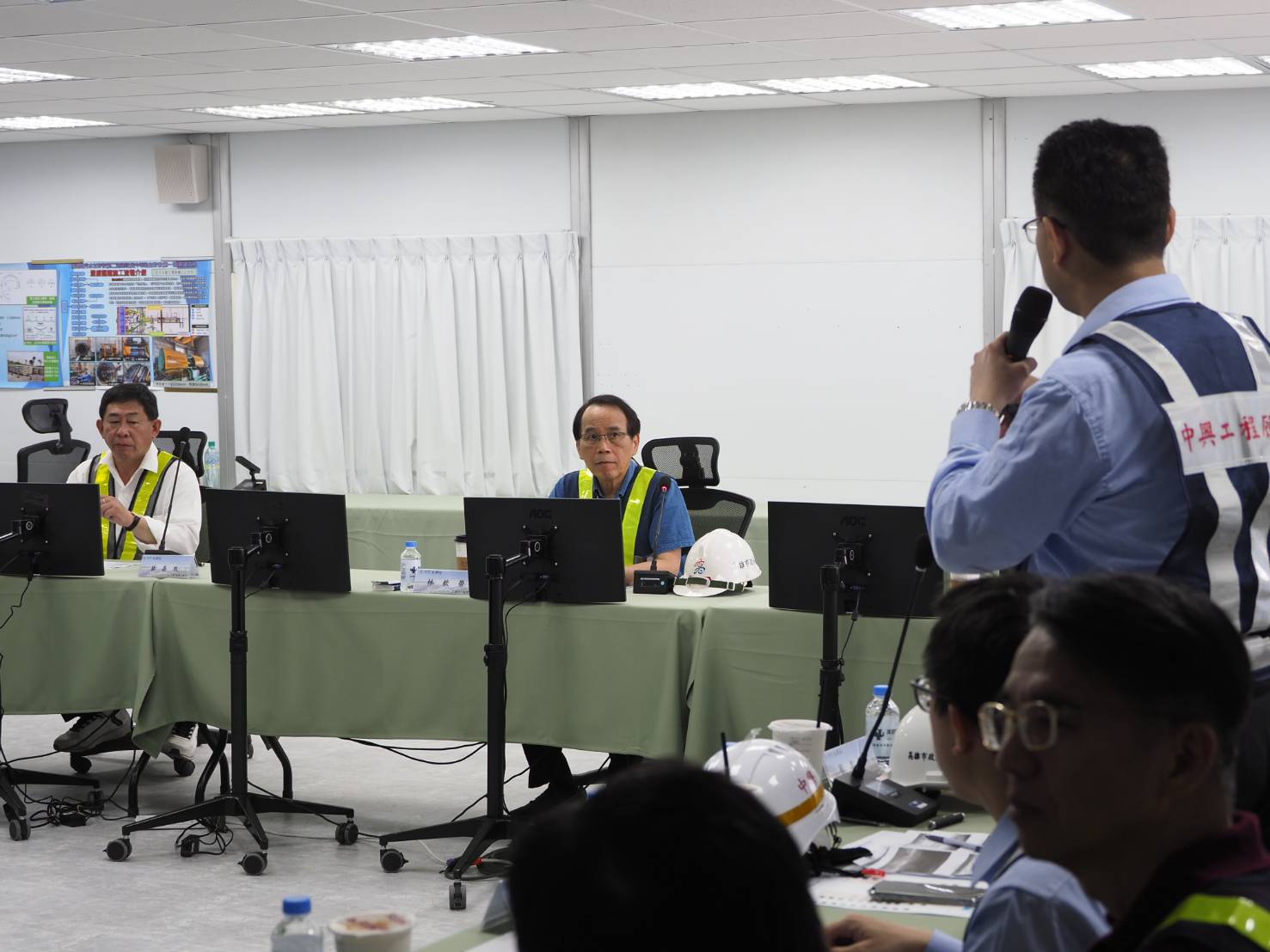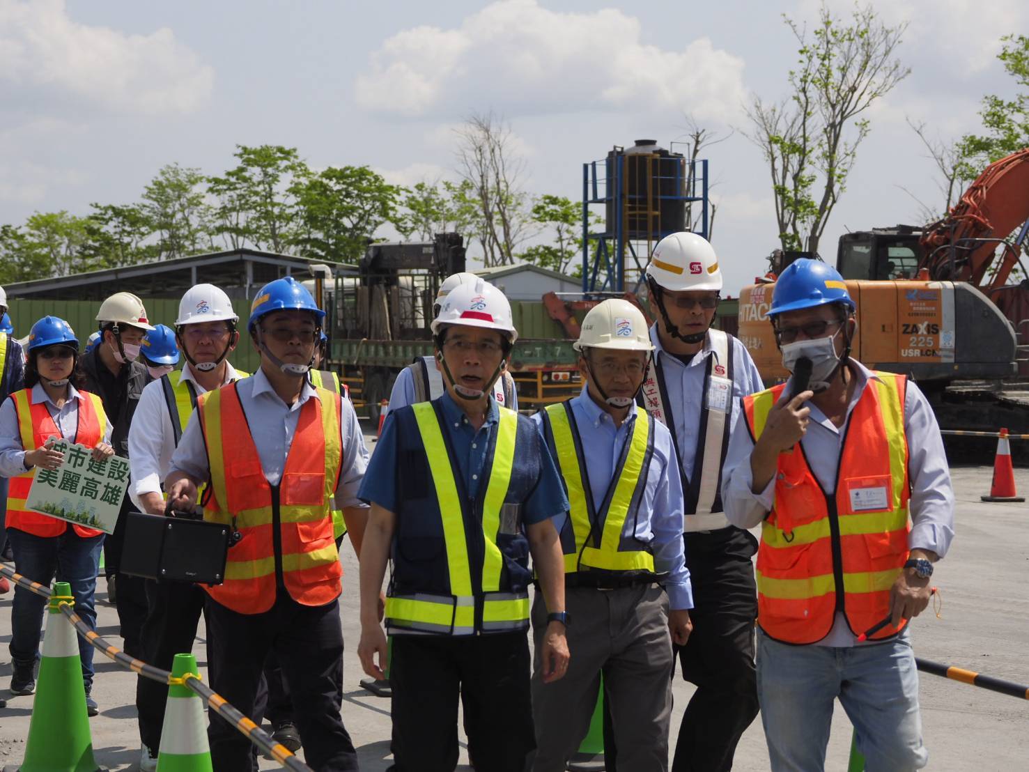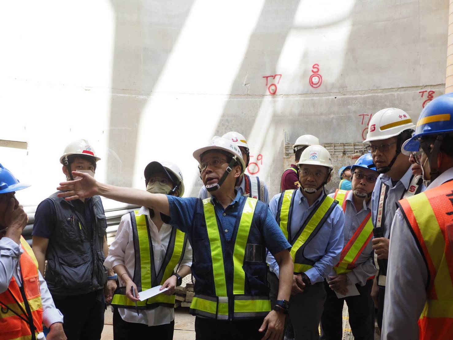 今日林副市長率水利局同仁視察「擴建路污水主幹管(第二過港段)暨中華路污水主幹管(第一區)新建工程」,指示施工團隊落實施工期間施工人員的安全以及職業安全衛生措施,以如期如質完成工程。
