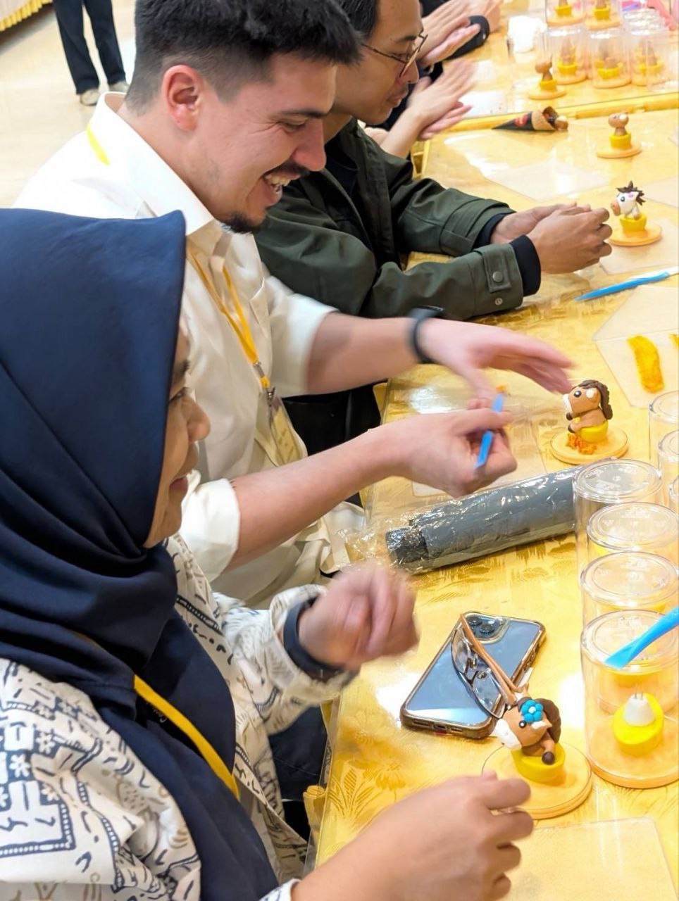為讓學人充分體驗台灣的在地文化,活動特別安排捏麵人教學、寫春聯、彩繪燈籠及自製棉花糖等活動,除邀請捏麵人師傅教學DIY馬年吉祥紀念公仔外,更準備書法習字帖,吸引不少準備學習正體字的學人駐足試寫。另現場也準備元宵應景湯圓及炸地瓜球等台式小點,供嘉賓享用。許多學人參加「留台校友會(TAA)」攤位活動,加入TAA校友社群,並合影留念。(E)