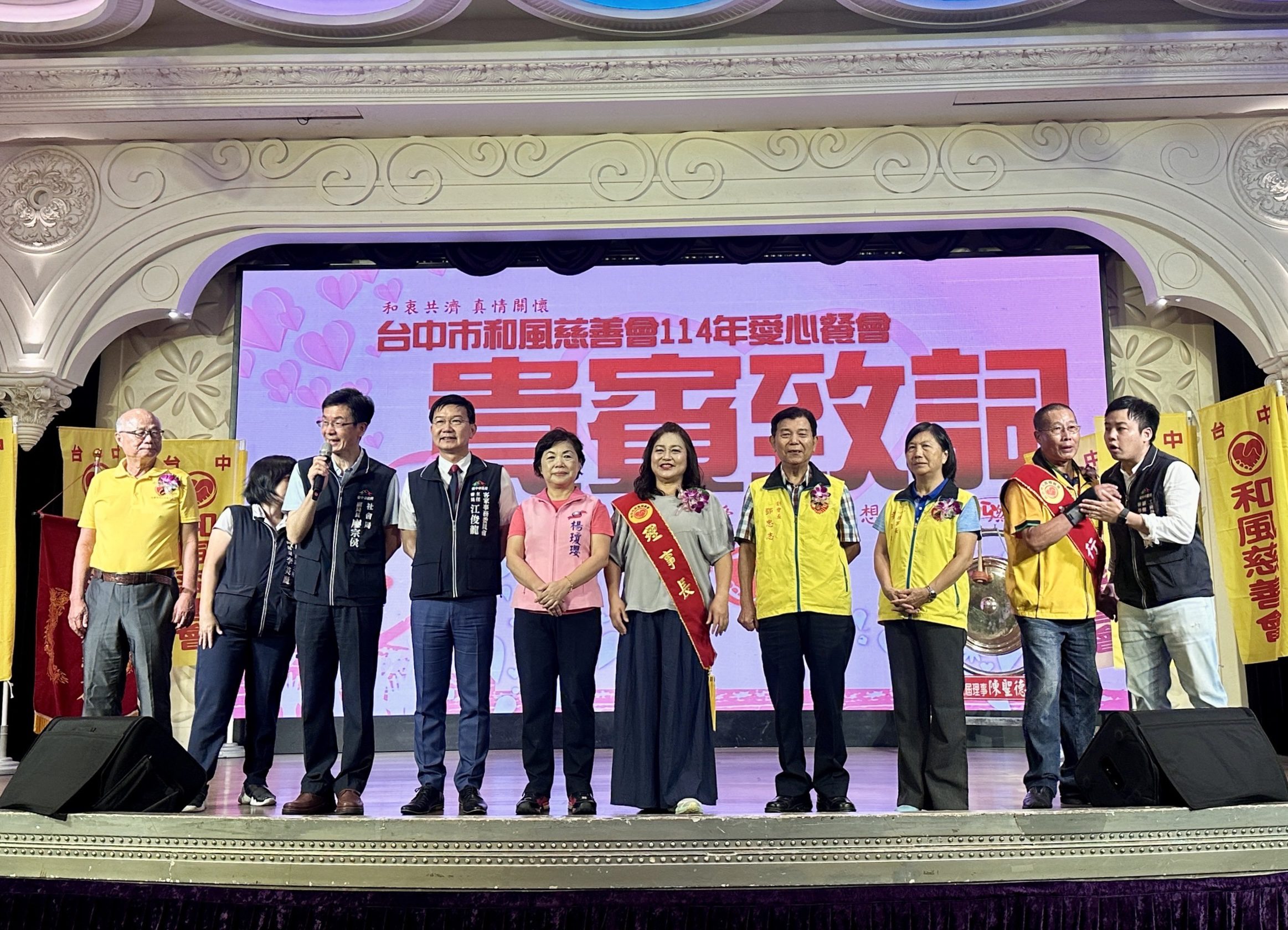台中市和風慈善會今(30)日舉辦「2025潤草公益愛心餐會」,以「和衷共濟、真情關懷」為主題,號召各界善心人士共襄盛舉。台中市政府社會局副局長廖宗侯代表市長盧秀燕出席,感謝理事長江月英與執行長葉清貴帶領協會,多年來持續關懷弱勢學童與家庭,宛如寒冬中的暖流,為社會點燃希望與光亮。