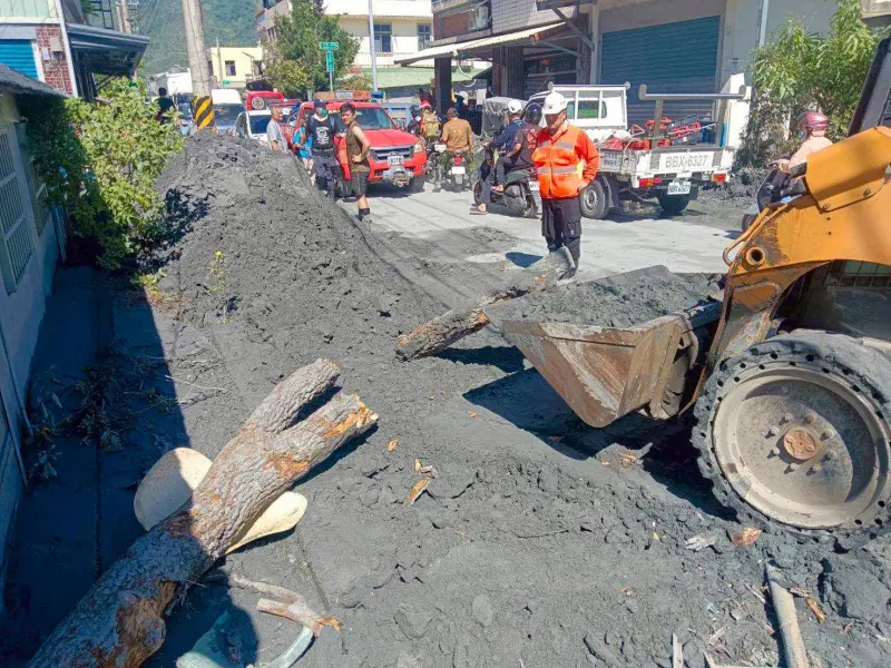 花蓮光復鄉日前因馬太鞍溪堰塞湖潰壩,台南市政府秉持「災害無情、人間有愛」的精神,第一時間即啟動跨局處支援行動,消防局、環保局、工務局與社會局相繼投入協助清理環境。(圖 /南市府提供)