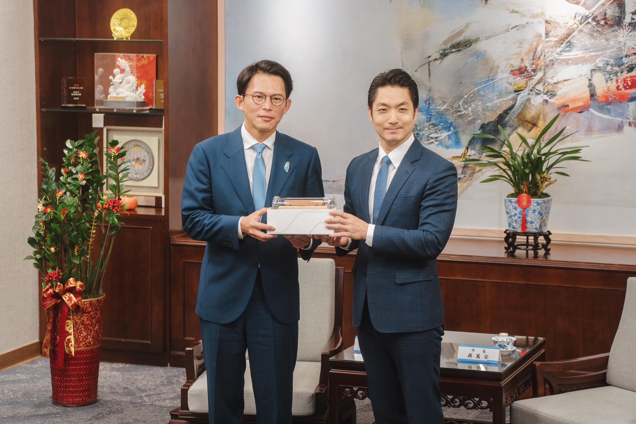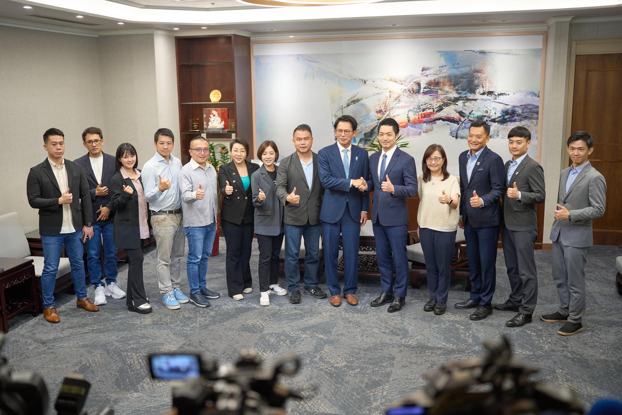臺北市長蔣萬安今(12)日出席民眾黨主席黃國昌率臺北市議會民眾黨團拜會市府行程,雙方互贈禮品並合照。蔣萬安市長致詞時,首先感謝民眾黨黨團於過去兩年多來,在臺北市議會為市民發聲、監督市政。他強調,儘管市府團隊與議會黨團在行政與立法上角色不同,但為市民服務的目標一致,皆為「臺北隊」的一員。