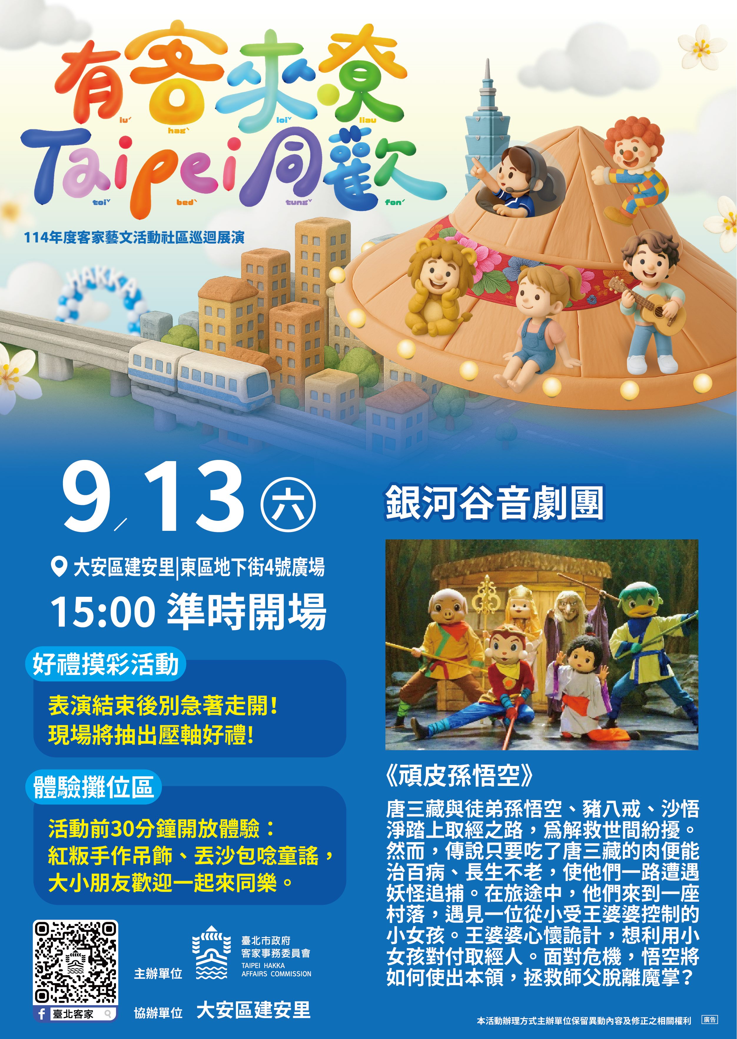 銀河谷音劇團《頑皮孫悟空》幽默風趣的表演風格,巧妙結合客家語言與戲劇,讓孩子在笑聲中親近客家文化,寓教於樂。