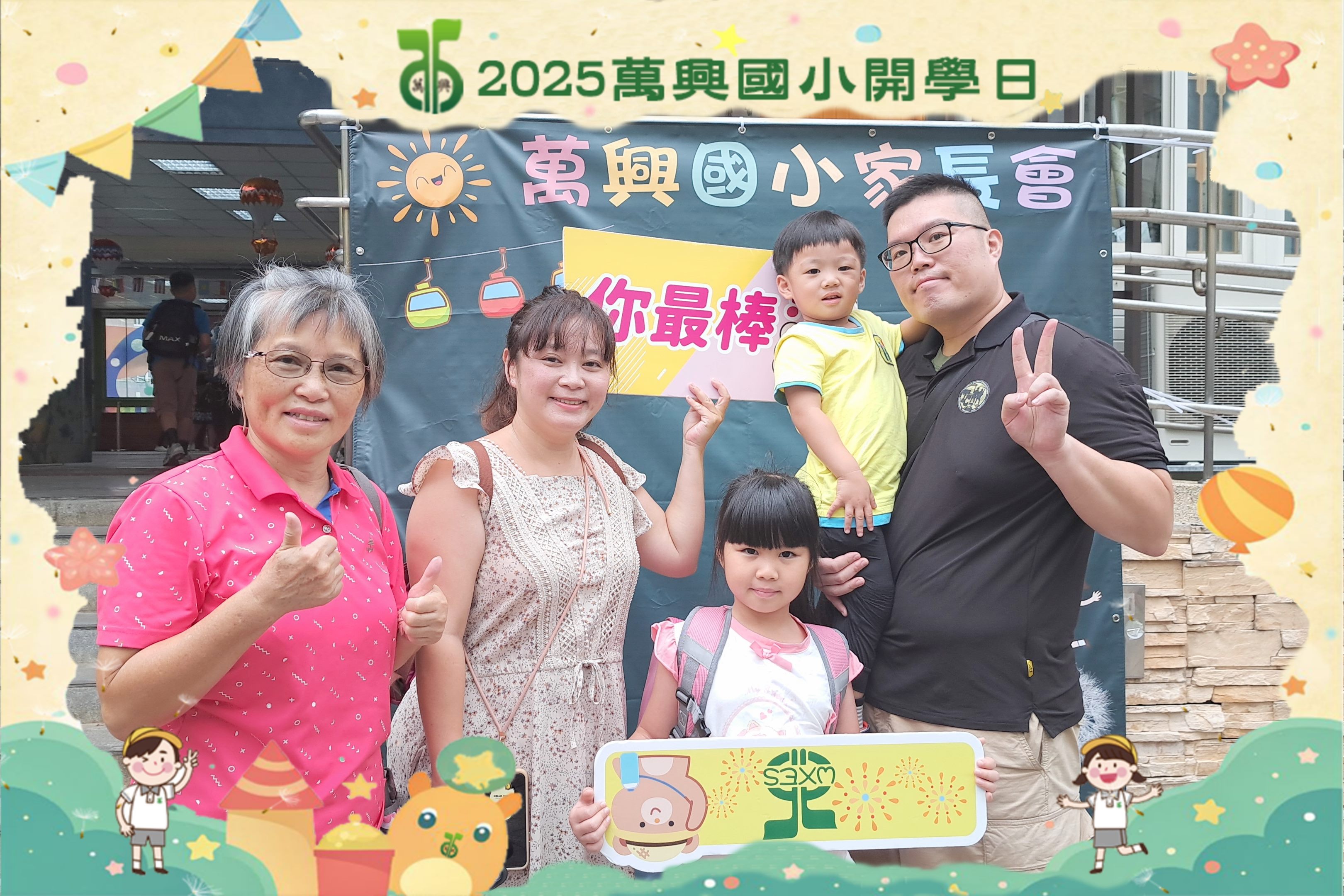 萬興國小家長會是開學活動的重要推手。不僅安排三個可愛吉祥玩偶在校門口迎接小朋友,並將極具地方文化特色的貓纜及動物園融入拍照背版中,由專業攝影師為親子捕捉最真摯的笑容,歡笑聲不斷,更貼心提供「即拍即印」服務,讓家長即時帶回珍貴的開學日紀念照片。當天,隨處可見家長陪伴孩子拍照的身影及擁抱,更是家庭教育中最珍貴的陪伴時光。參與的家長表示,開學日能和孩子一起拍照,還可以立刻拿到精美的照片,覺得非常感動。家長會長蕭雯謙會長說:「三個可愛玩偶在新生入學日與小朋友親切互動,還安排小朋友和玩偶合影,都是為了讓小一新生留下值得紀念的歡笑回憶。」這份溫馨安排,展現滿滿暖心與支持,展現親師合作的力量。