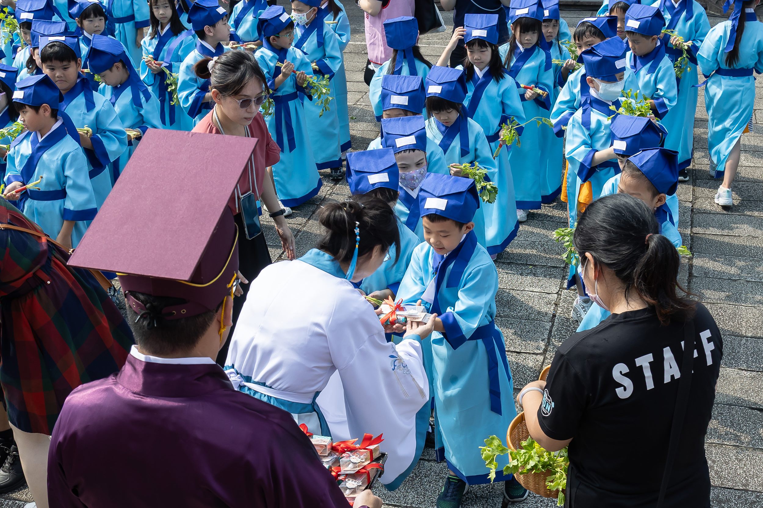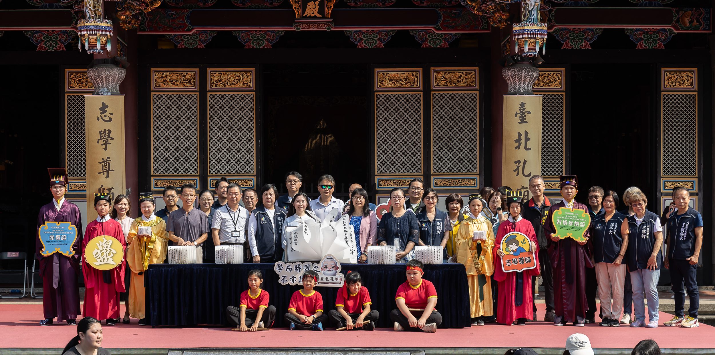 臺北市紀念大成至聖先師孔子誕辰2575週年釋奠典禮,即將於今(114)年9月28日(星期日)於臺北孔廟隆重登場,臺北孔廟配合盛大慶祝釋奠典禮,並體現尊師重道的禮俗與道德教育的傳承,特別在今日邀請大龍國小一年級入學新生以吸睛可愛的古代小書生造型,依循古禮向學校師長行依「釋菜禮」。