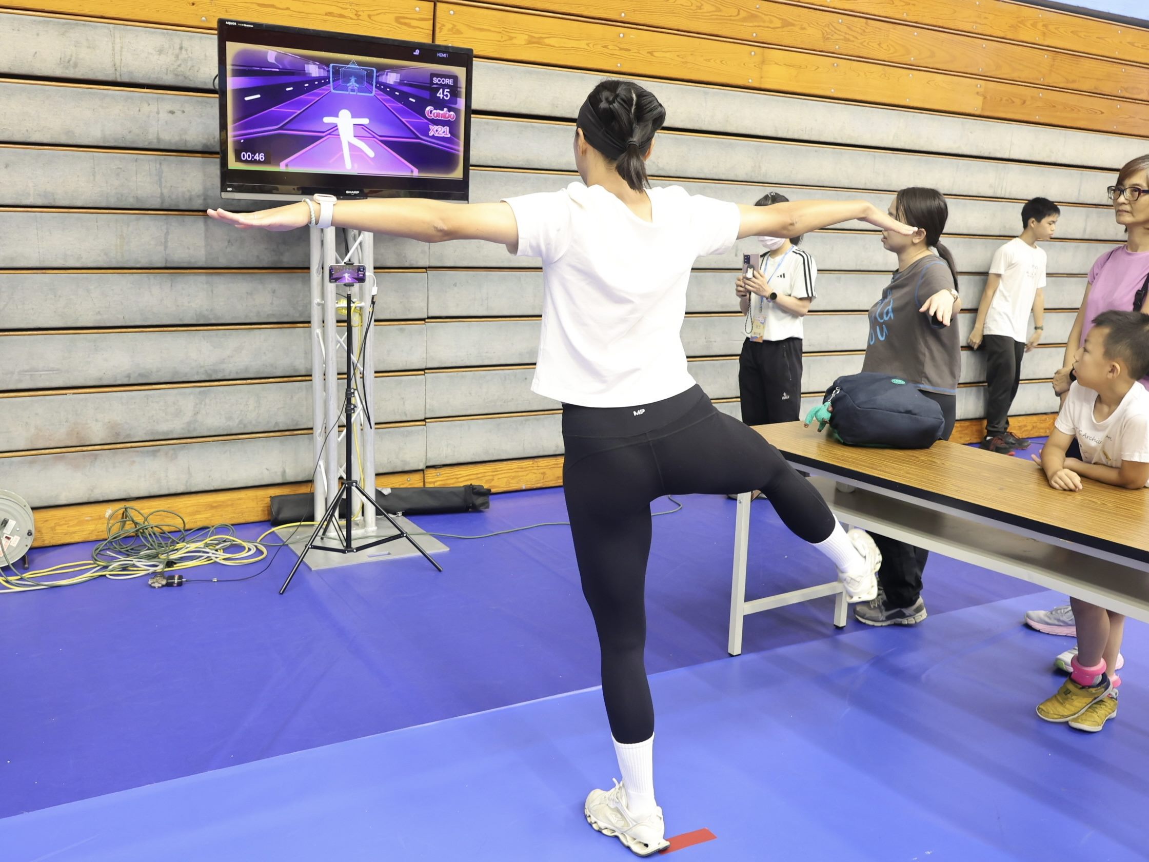 今(114)年運動嘉年華的「運動闖關挑戰」,有別以往加入虛擬體感體驗項目,設有AI體感舞蹈、輕艇激流、光動燈反應挑戰、飛盤九宮格、桌球發球機、眼疾手快、百步達人等7大關卡,完成任務,可兌換精美小禮物。現場的大朋友小朋友玩得不亦樂乎,期待明年再來參加。
